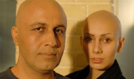 این عکس رضا عطاران و خاطره حاتمی را با گریم خاصی در فیلم «قرنطینه» نشان می‌دهد.