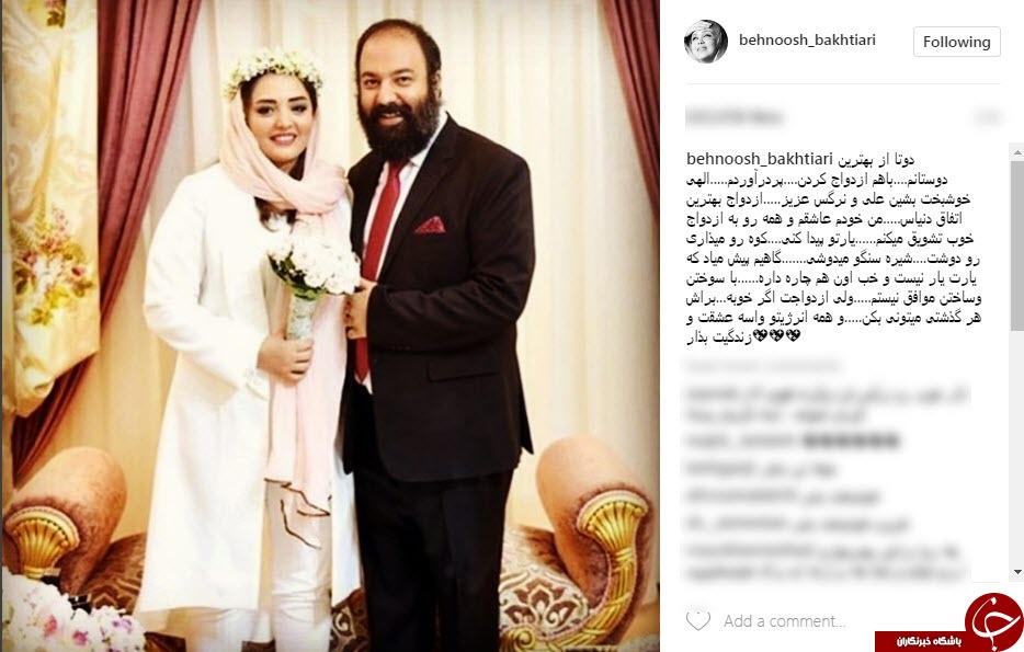 تبریک بهنوش بختیاری به ازدواج نرگس محمدی و علی اوجی+عکس