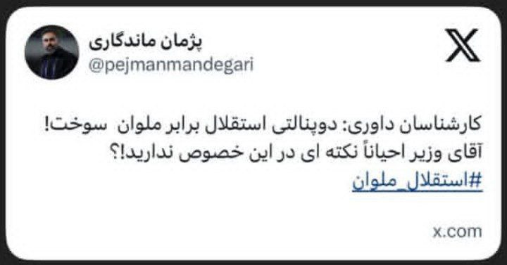 پژمان ماندگاری مدیررسانه‌ای استقلال با انتشار توئیتی به وزیر ورزش کنایه زد.
